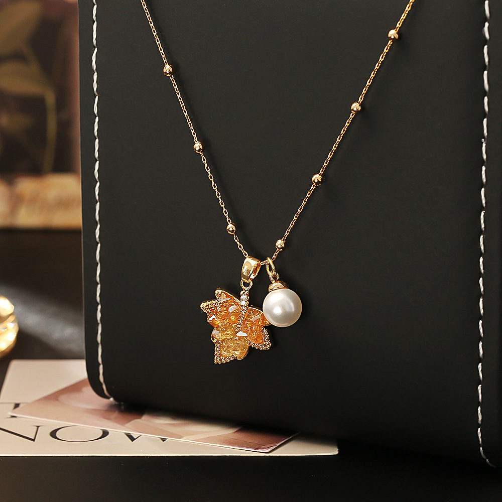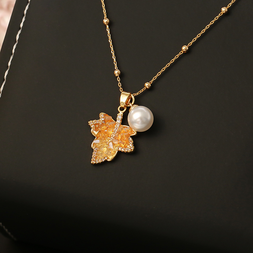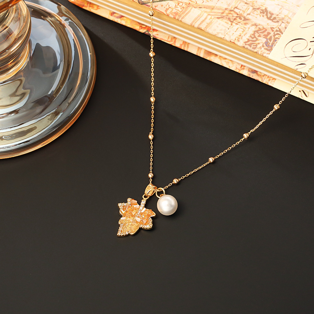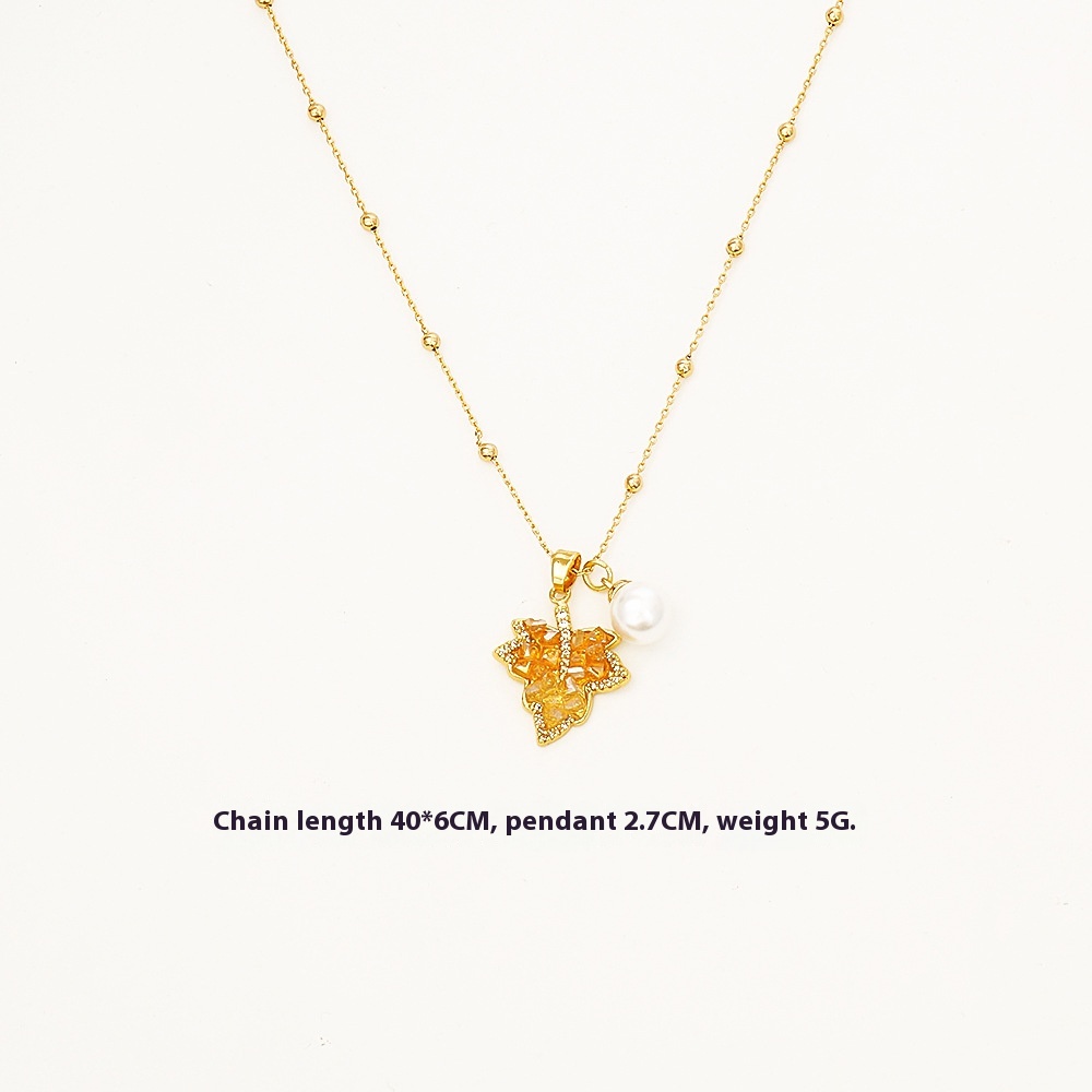Retro Gradient Crystal Maple Leaf Pearl Necklace